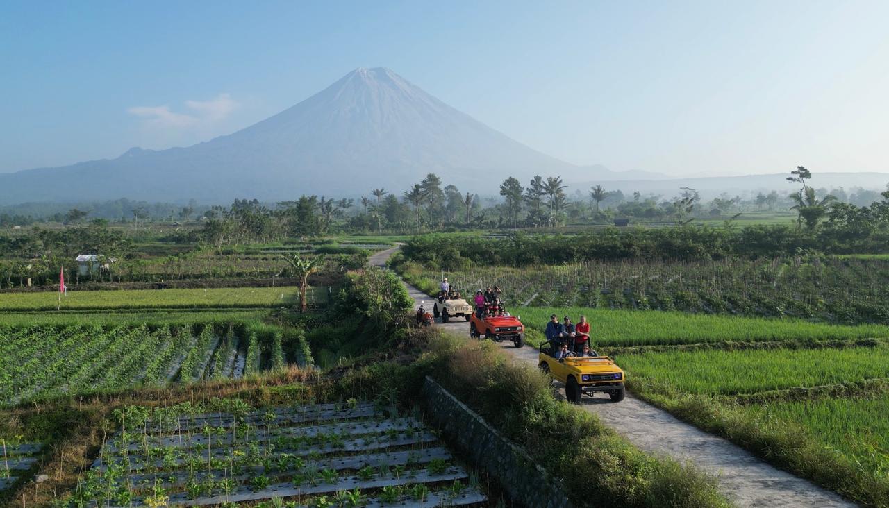 Perjalanan Lava Tour biasanya dimulai dari meeting point di Rest Area Leter U Sumberurip, tempat safari jeep menunggu para wisatawan untuk memulai petualangan sekitar 3 jam ke depan. Rute yang ditempuh sangat beragam — mulai dari jalur berlumpur khas bekas aliran lahar vulkanik, persawahan luas yang membentang bak lukisan, hingga kawasan hutan pinus yang sejuk dan instagramable.